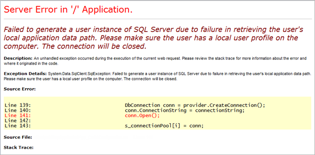 Following figure is an example of the ASP.NET Runtime error coming from a web application with debug mode enabled.